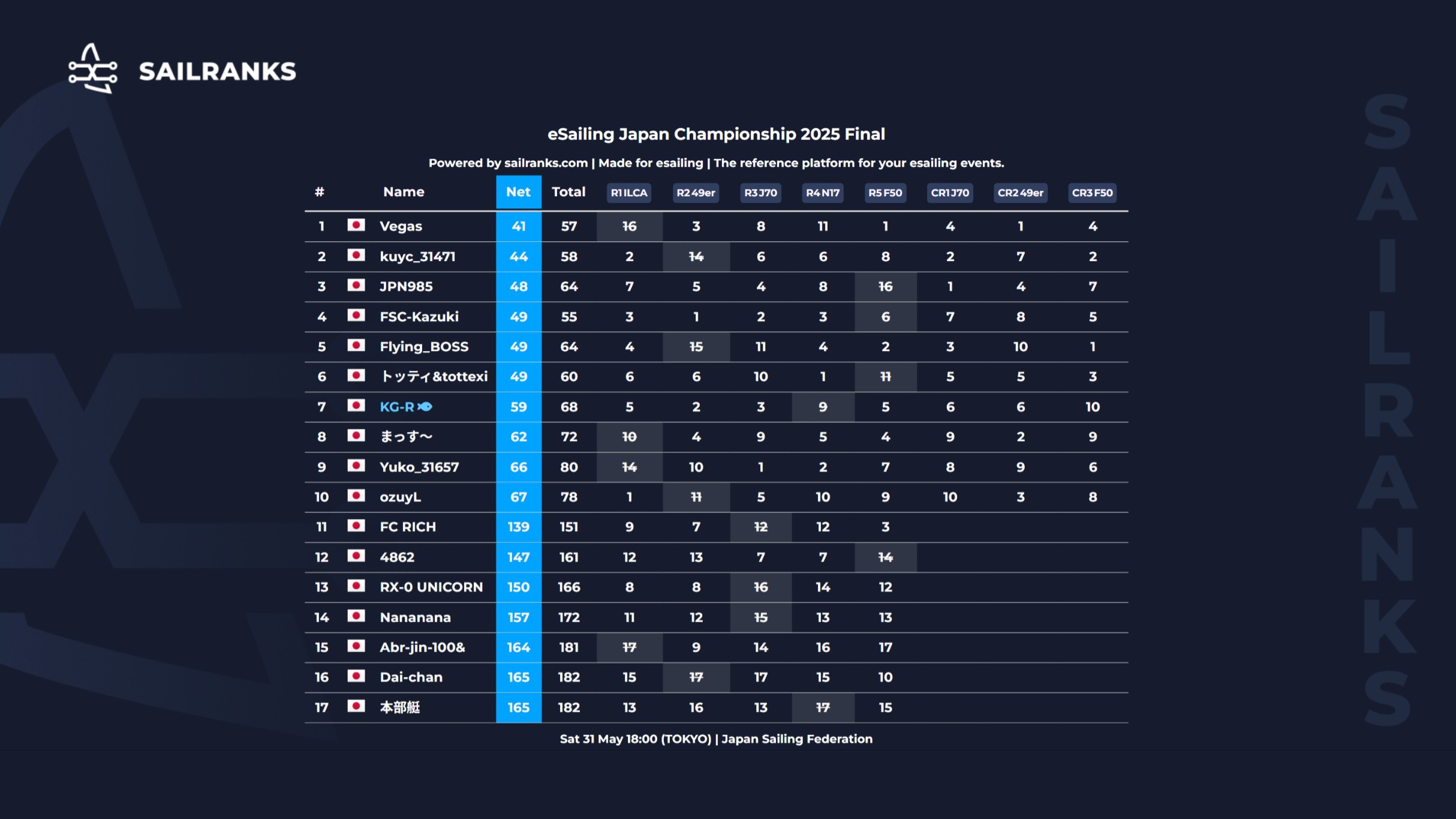 2025年5月31日(土) 夕方、今年で6回目となるeセーリング全日本選手権大会(EJC)が開催されました。低気圧の影響で、関東では強風が吹きあれ、昼過ぎまでは瞬間的に大雨が降ることもありました。まさにeセーリング日和。