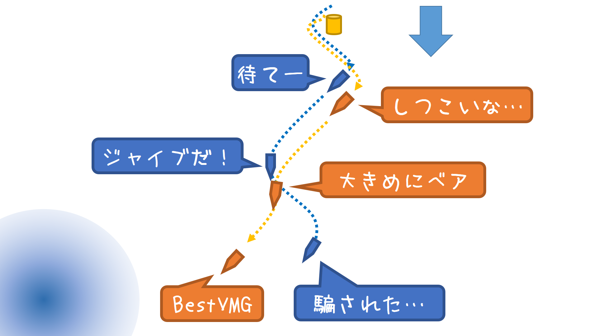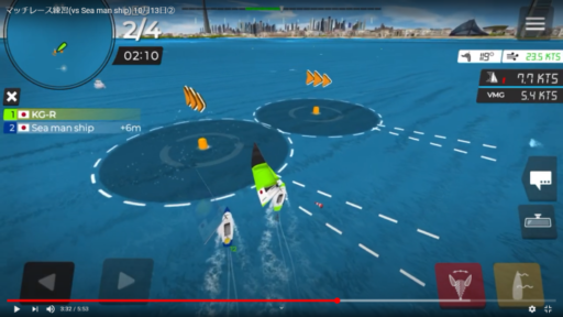 しつこい後続艇とジャイビングマッチに突入した場合は、ジャイブするフリで一旦デッドランまで落として、風位を越えずに元のBestVMGに戻す「ジャイブフェイク」が有効です。このフェイクは、有利サイドに向かっている時に使いましょう。
