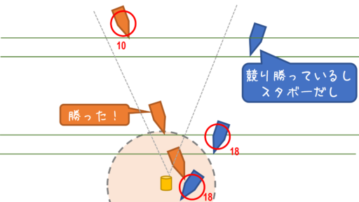 スタボー先行艇の左後角にオーバーラップできることがある