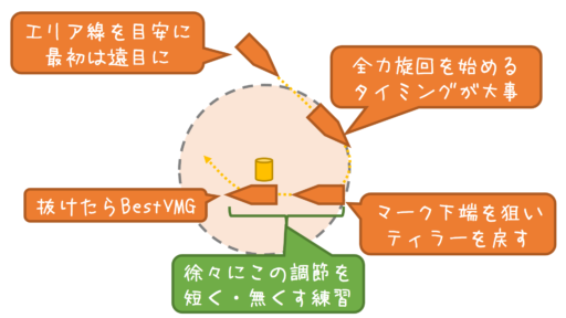 遠目アプローチから練習して、徐々に最小旋回の間合いを把握しよう