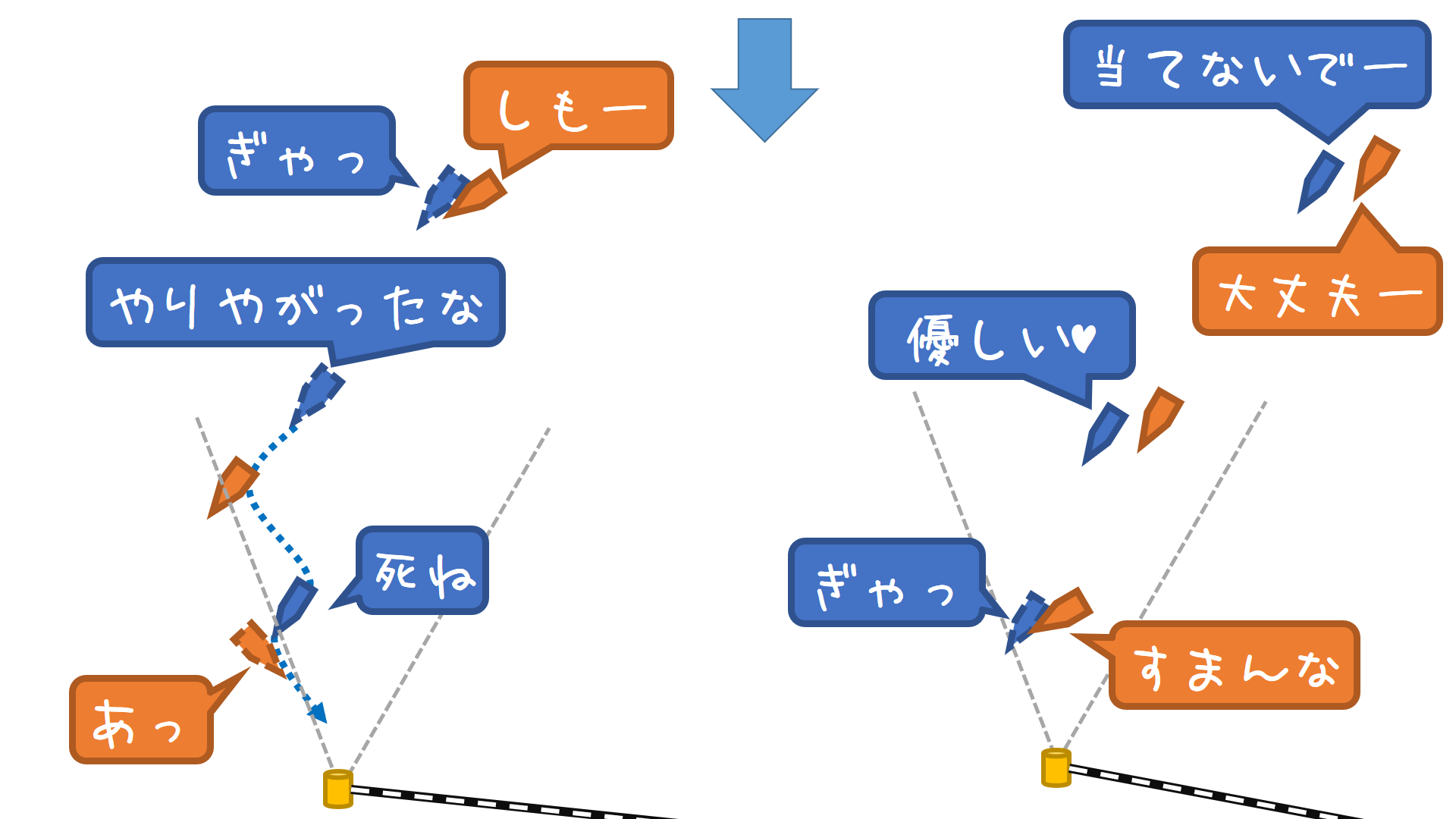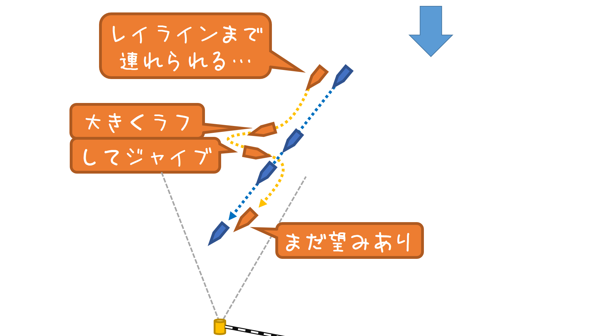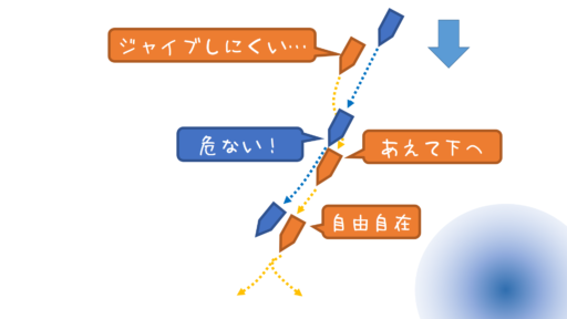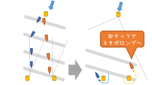 下マークはロング側を即タックが基本