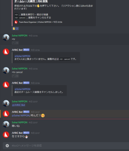 あまりセーリングとは関係なくて申し訳ないのですが、日本VRIクラブは活動拠点にDiscord(Wikipedia)というフリーウェアを使っており、これがなかなか優れものなので、少しギークに掘り下げてBot作成に挑戦してみました。
