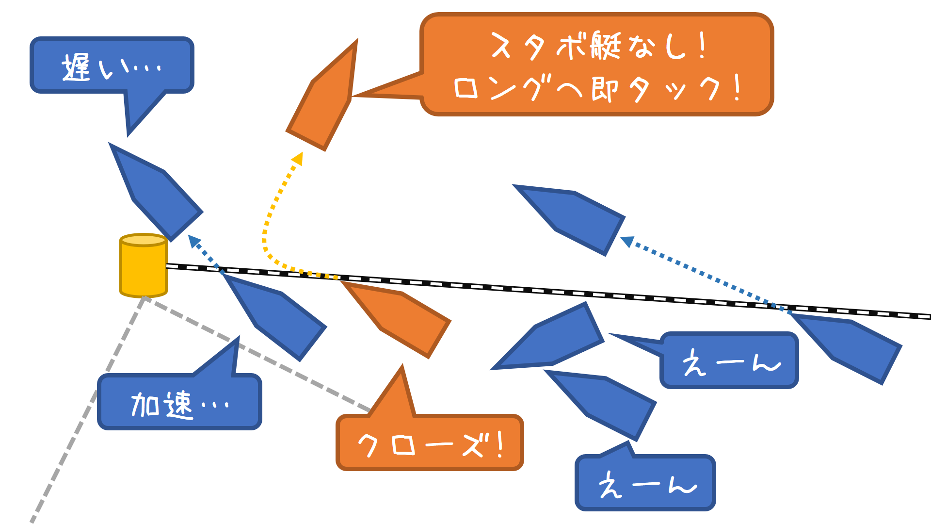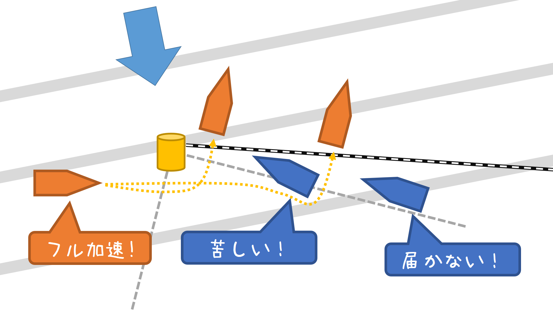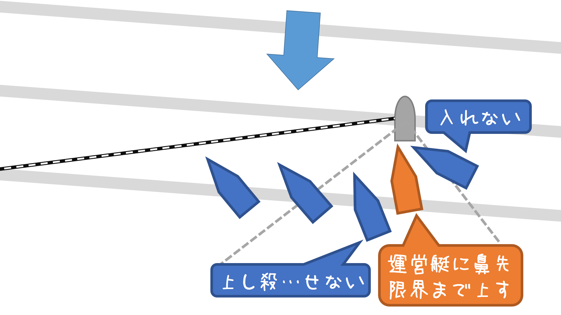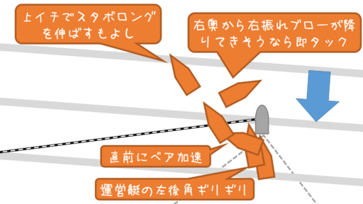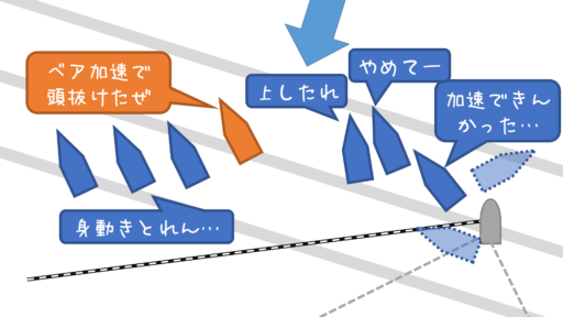 ・ブランケに入れるか12条を取りたい先行艇 ⇔ フル加速できる後続艇