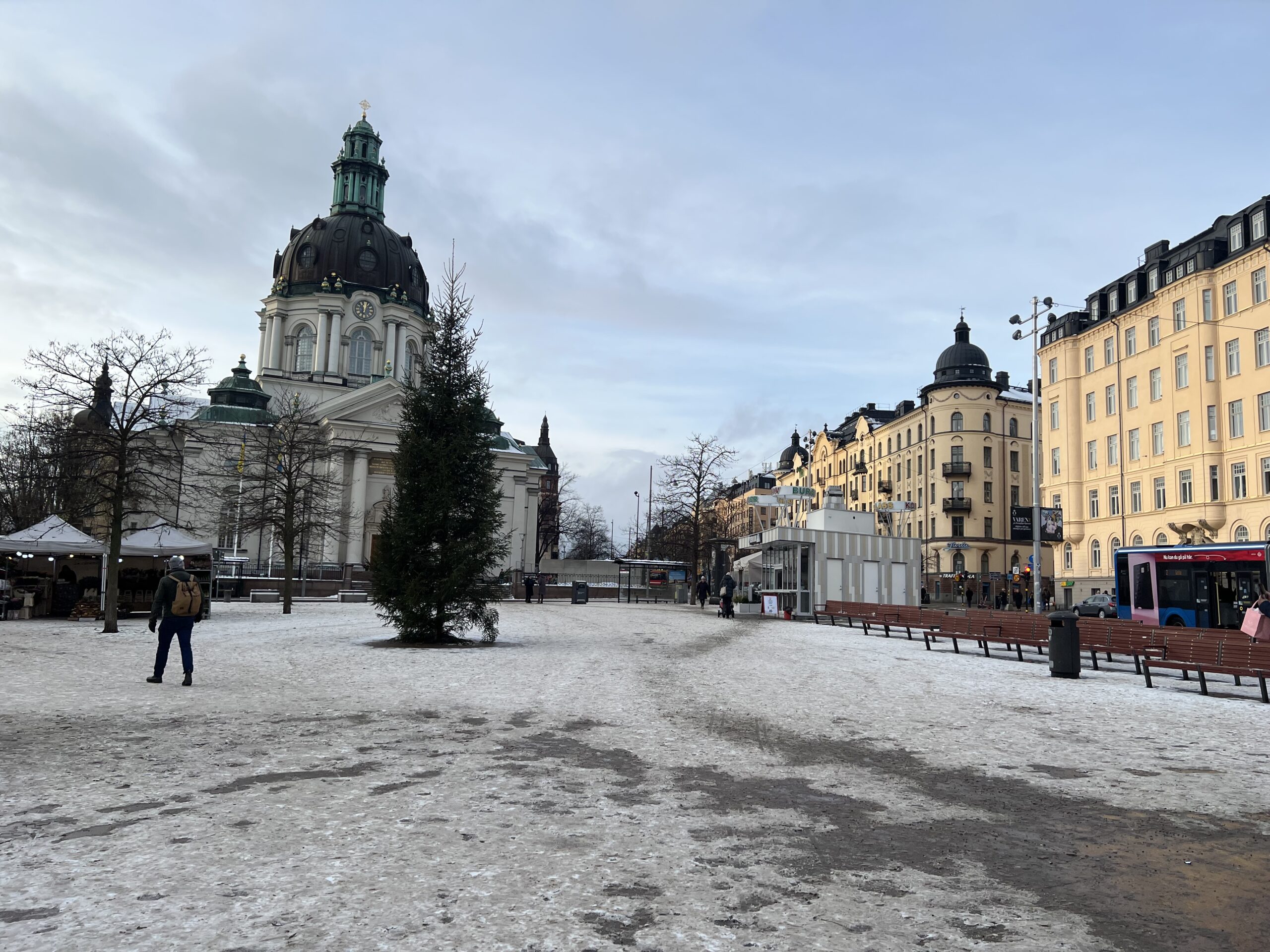 Solna 駅のコンビニで昼食用にパンを買おうと思ったがやめて、マンゴーティーだけ買って試合会場の最寄り駅 Odenplan へ行った。
