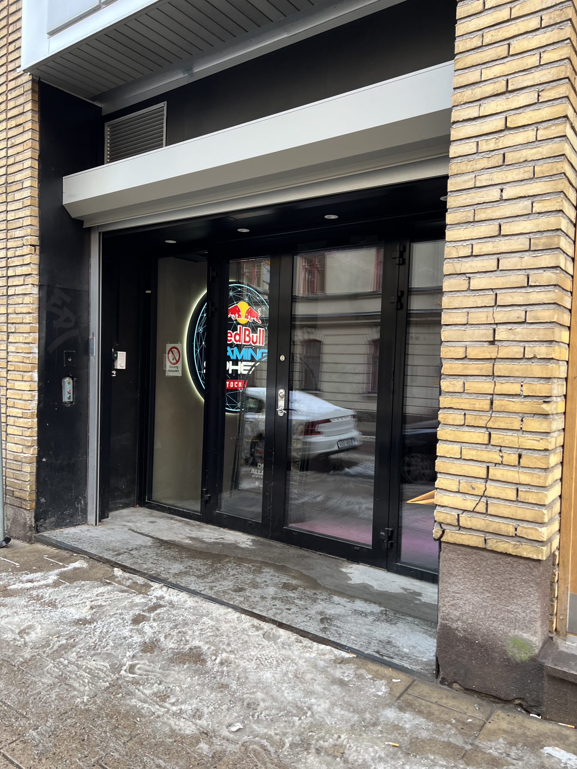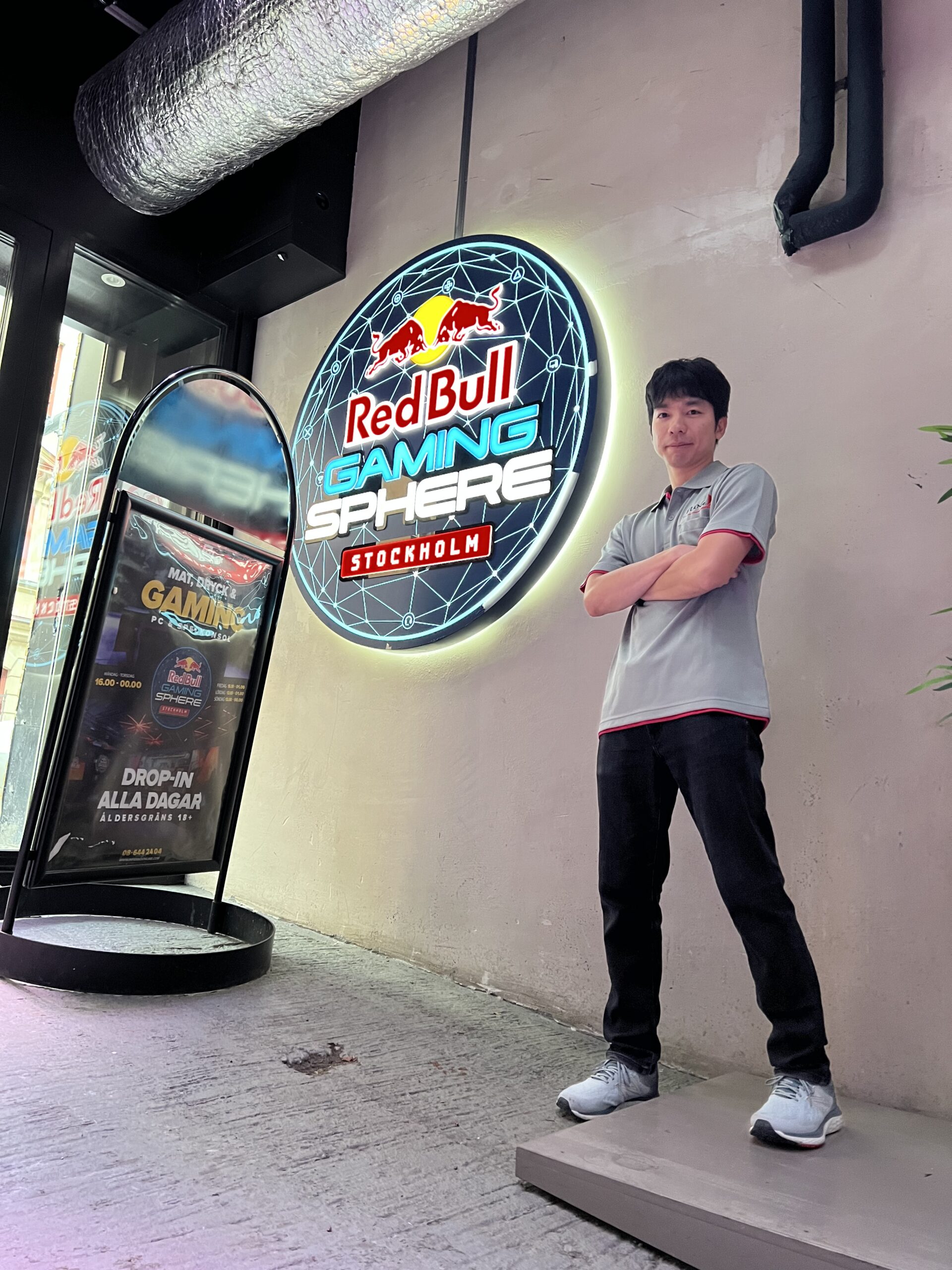 地図でピンのある場所に近づいても、看板などは見えてこなかった。大きな建物の中に入っていることは確からしかったので、ドアを見つけては中をのぞきこんだ。2、3個目のドアで Red Bull の文字を発見した。まだ時間があったのでもう少し周辺を歩こうと歩きだした直後に曲がり角から Kazuki さんが出てきた。ここで「またあとで」と言ってどこかにいくのも変な気がしたので、一緒に会場に入ることにした。